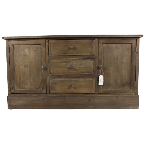 - Meuble bas de rangement en sapin.Celui-ci est composé de 2 espaces de rangement derrière 2 portes pleines à chaque extrémité avec au centre du meuble 3 tiroirs sur glissière.Idéal pour votre cuisine ou votre salle à manger.Chaque espace de rangement avec plateaux fait 32cm (L) x 46 (H) x 35,5 (P) et chaque tiroir fait 39cm (L) x 13 (H) x 35,5 (P). L'ensemble est en bois, d'une couleur très naturelle, que vous pourrez facilement teindre ou lasurer à votre convenance. Le style campagne de nos meub